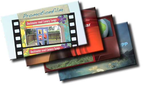 Till vänster finns smakprover på några av våra produktioner. De flesta av våra andra produktioner kan vi inte visa här av copyright- och/eller andra skäl.